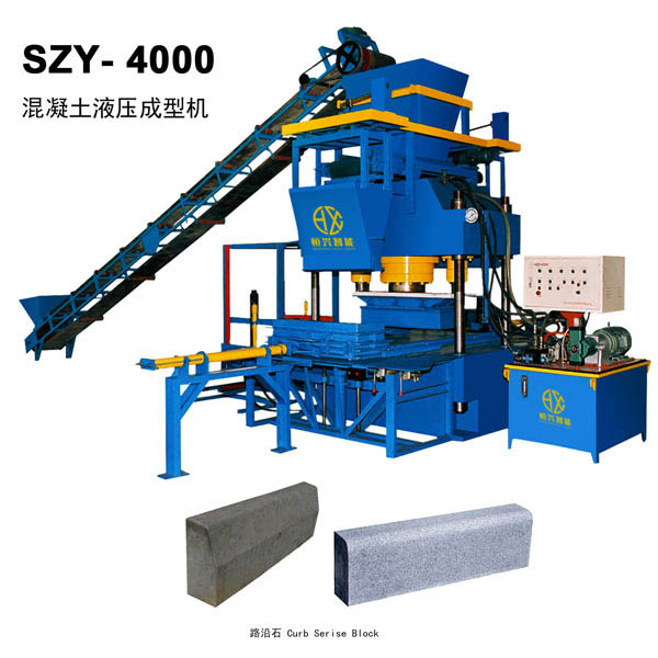 三興SZY-4000液壓磚機該型機是進國外先進技術并根據我國國情設計生產,具有結構緊湊、外形美 觀、耐用度高、維修率低、自動化程度先進等優點。進口電腦、電器、部分液壓元件、密封件。通用性好。設備性能穩定可靠。通過更換模具,可用于生產水泥機磚、馬路沿磚和空心磚等建筑材料。該型機每模能生產30塊機磚,或生產1000 x 450規格以下的馬路沿磚。